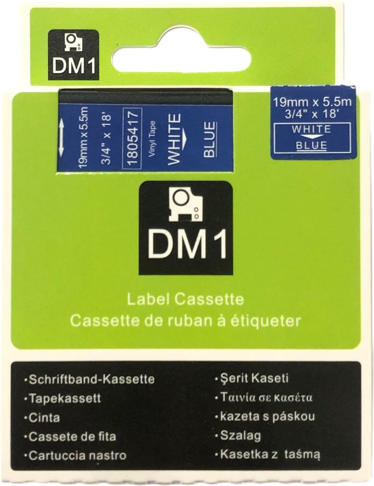 Zamiennik taśmy do drukarek etykiet Dymo 1805417 19mm niebieska biały nadrukWysokiej jakości taśma winylowa kompatybilna z drukarkami etykiet Dymo, idealna do profesjonalnego oznaczania przewodów, kabli, paneli elektrycznych, narzędzi oraz innych powierzchni przemysłowych.Kolor taśmy: …