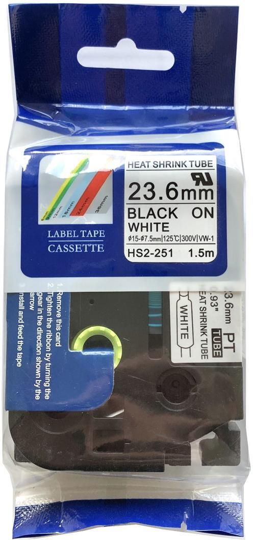 Rurka termokurczliwa HS2-251 zamiennik Brother HSe-251 Rurka termokurczliwa firmy PUTY jest idealna do znakowania oraz identyfikacji kabli i przewodów. HS2-251 Zamiennik taśm do drukarki etykiet P-touch Czarny tekst na białej rurce Rozmiar 23,6mm Długość 1,5m Φ15 - Φ7.5mm taśmy PUTY są w 100% zgodne z drukarkami etykiet P-touch Stosowny do PT-H500 PT-E500 PT-E550 PT-700 PT-P750 Wszystkie nazwy własne producentów są zastrzeżone i zostały użyte wyłącznie w celu identyfikacji produktu. Taśmy dostępne na innych naszych aukacjachPuty laminowane do drukarek Brother o długości 8m: Standardowe taśmy laminowane | Kolor taśmy / nadruku | 6mm | 9mm | 12mm | 18mm | 24mm | 36mm | | przezroczysty / czarny | TZ2-111 | TZ2-121 | TZ2-131 | TZ2-141 | TZ2-151 | TZ2-161 | | biały / czarny | TZ2-211 | TZ2-221 | TZ2-231 | TZ2-241 | TZ2-251 | TZ2-261 | | czerwony / czarny | TZ2-411 | TZ2-421 | TZ2-431 | TZ2-441 | TZ2-451 | TZ2-461 | | niebieski / czarny | TZ2-511 | TZ2-521 | TZ2-531 | TZ2-541 | TZ2-551 | TZ2-561 | | żółty / czarny | TZ2-611 | TZ2-621 | TZ2-631 | TZ2-641 | TZ2-651 | TZ2-661 | | zielony / czarny | TZ2-711 | TZ2-721 | TZ2-731 | TZ2-741 | TZ2-751 | TZ2-761 | | przezroczysty / czerwony | TZ2-112 | TZ2-122 | TZ2-132 | TZ2-142 | TZ2-152 | TZ2-162 | biały / czerwony | TZ2-212 | TZ2-222 | TZ2-232 | TZ2-242 | TZ2-252 | TZ2-262 | | przezroczysty / niebieski | TZ2-113 | TZ2-123 | TZ2-133 | TZ2-143 | TZ2-153 | TZ2-163 | | biały / niebieski | TZ2-213 | TZ2-223 | TZ2-233 | TZ2-243 | TZ2-253 | TZ2-263 | | czarny / złoty | TZ2-314 | TZ2-324 | TZ2-334 | TZ2-344 | TZ2-354 | TZ2-364 | | przezroczysty / biały | TZ2-115 | TZ2-125 | TZ2-135 | TZ2-145 | TZ2-155 | TZ2-165 | | czarny / biały | TZ2-315 | TZ2-325 | TZ2-335 | TZ2-345 | TZ2-355 | TZ2-365 | | czerwony / biały | TZ2-415 | TZ2-425 | TZ2-435 | TZ2-445 | TZ2-455 | TZ2-465 | | niebieski / biały | TZ2-515 | TZ2-525 | TZ2-535 | TZ2-545 | TZ2-555 | TZ2-565 | | zielony / biały | TZ2-715 | TZ2-725 | TZ2-735 | TZ2-745 | TZ2-755 | TZ2-765 | | złoty / czarny | TZ2-811 | TZ2-821 | TZ2-831 | TZ2-841 | TZ2-851 | TZ2-861 | | srebrny mat / czarny | TZ2-M911 | TZ2-M921 | TZ2-M931 | TZ2-M941 | TZ2-M951 | TZ2-M961 | | przezroczysty mat / czarny | TZ2-M11 | TZ2-M21 | TZ2-M31 | TZ2-M41 | TZ2-M51 | TZ2-M61 | Taśmy laminowane z mocnym klejem (bardziej wymagajce zastosowania, np. na powierzchniach chropowatych lub o zmiennej strukturze) | Kolor taśmy / nadruku | 6mm | 9mm | 12mm | 18mm | 24mm | 36mm | | przezroczysty / czarny | TZ2-S111 | TZ2-S121 | TZ2-S131 | TZ2-S141 | TZ2-S151 | TZ2-S161 | | biały / czarny | TZ2-S211 | TZ2-S221 | TZ2-S231 | TZ2-S241 | TZ2-S251 | TZ2-S261 | | żółty / czarny | TZ2-S611 | TZ2-S621 | TZ2-S631 | TZ2-S641 | TZ2-S651 | TZ2-S661 | | srebrny / czarny | TZ2-S911 | TZ2-S921 | TZ2-S931 | TZ2-S941 | TZ2-S951 | TZ2-S961 | Taśmy laminowane elastyczne (do zakrzywionych powierzchni i umożliwiają tworzenie tzw. „flagi”) | Kolor taśmy / nadruku | 6mm | 9mm | 12mm | 18mm | 24mm | 36mm | | biały / czarny | TZ2-FX211 | TZ2-FX221 | TZ2-FX231 | TZ2-FX241 | TZ2-FX251 | TZ2-FX261 | | żółty / czarny | TZ2-FX611 | TZ2-FX621 | TZ2-FX631 | TZ2-FX641 | TZ2-FX651 | TZ2-FX661 | Taśmy laminowane plombowe (zabezpieczające) | Kolor taśmy / nadruku | 6mm | 9mm | 12mm | 18mm | 24mm | 36mm | | biały / czarny | TZ2-SE1 | TZ2-SE2 | TZ2-SE3 | TZ2-SE4 | TZ2-SE5 | TZ2-SE6 | Taśmy laminowane fluorescencyjne | Kolor taśmy / nadruku | 6mm | 9mm | 12mm | 18mm | 24mm | 36mm | | pomarańczowy / czarny | TZ2-B11 | TZ2-B21 | TZ2-B31 | TZ2-B41 | TZ2-B51 | TZ2-B61 | | żółty / czarny | TZ2-C11 | TZ2-C21 | TZ2-C31 | TZ2-C41 | TZ2-C51 | TZ2-C61 | | zielony / czarny | TZ2-D11 | TZ2-D21 | TZ2-D31 | TZ2-D41 | TZ2-D51 | TZ2-D61 | Taśmy termokurczliwe kablowe o długości 1,5 m | Kolor taśmy / nadruku | 5.8mm | 8.8mm | 11.7mm | 17.7mm | 23.6mm | | biały / czarny | HS2-211 | HS2-221 | HS2-231 | HS2-241 | HS2-251 | | żółty / czarny | HS2-611 | HS2-621 | HS2-631 | HS2-641 | HS2-651 | Taśmy czyszczące głowice o długości 4m Szerokość | Symbol 12mm | TZ2-CL3 18mm | TZ2-CL4 24mm | TZ2-CL5 36mm | TZ2-CL6