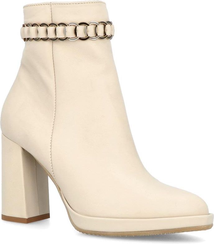 Skórzane botki na obcasie - SIMEN 6493A BEŻOWE Częstochowa