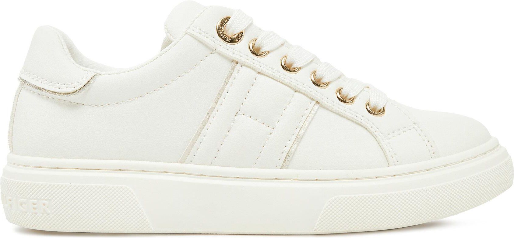 Nowoczesne sneakersy dla dziewczynek od renomowanej marki Tommy Hilfiger to idealny wybór na co dzień! Wykonane z wysokogatunkowego tworzywa syntetycznego, te buty zapewniają trwałość i komfort noszenia. Dzięki starannemu wykonaniu i modnemu designowi, świetnie sprawdzą się zarówno w szkole, jak i podczas zabawy na świeżym powietrzu. Wybierz Tommy Hilfiger i podaruj swojej małej księżniczce wygodę oraz styl, które pokocha od pierwszego kroku!