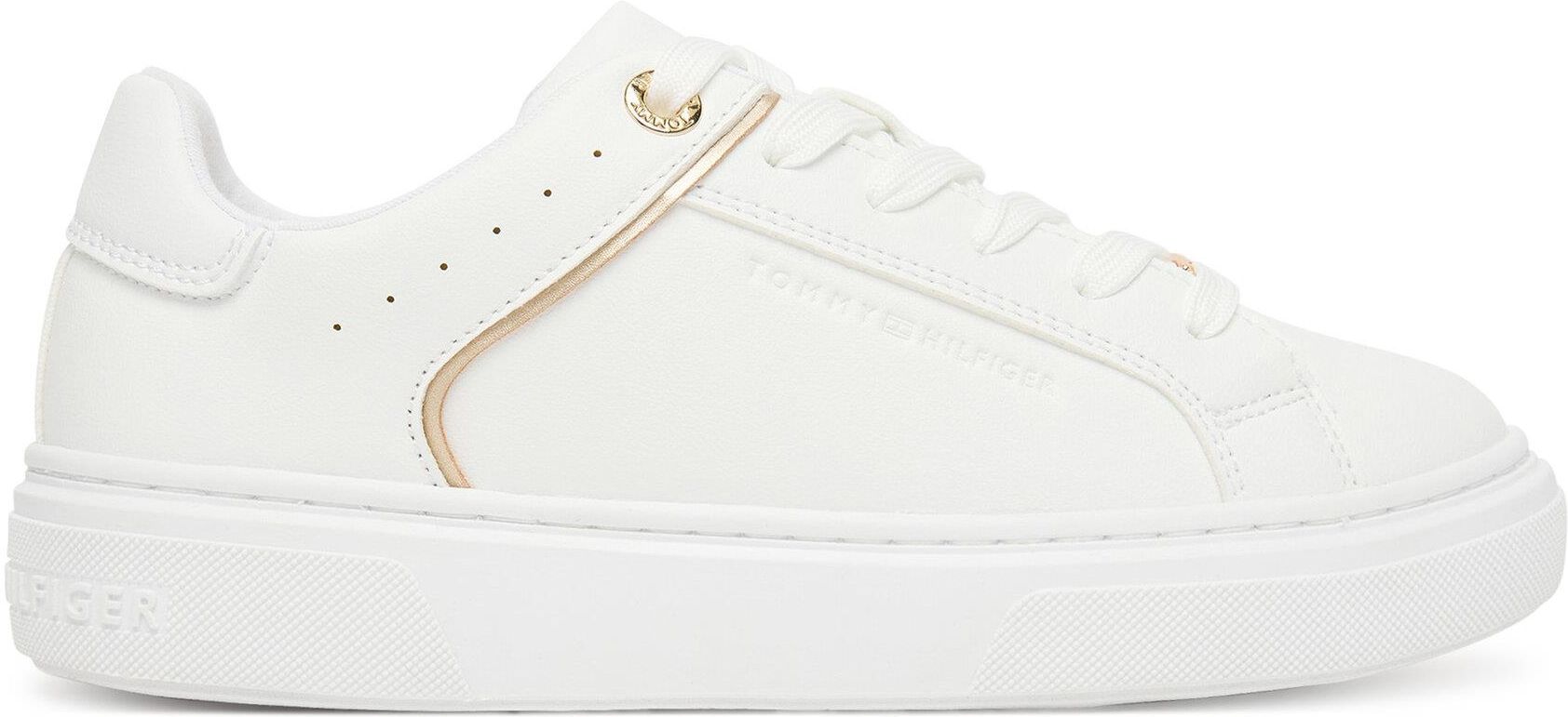 Sneakersy dziewczęce Tommy Hilfiger to styl i wygoda w najlepszym wydaniu! Wykonane z imitacji skóry, zachwycają modnym designem, który doskonale wpisuje się w najnowsze trendy. Wyciągane wkładki to praktyczne rozwiązanie, które ułatwia utrzymanie butów w czystości i pozwala na idealne dopasowanie do małych, rozwijających się stóp. Te sneakersy to świetny wybór zarówno na co dzień, jak i na bardziej wyjątkowe okazje – komfort i styl w jednym!