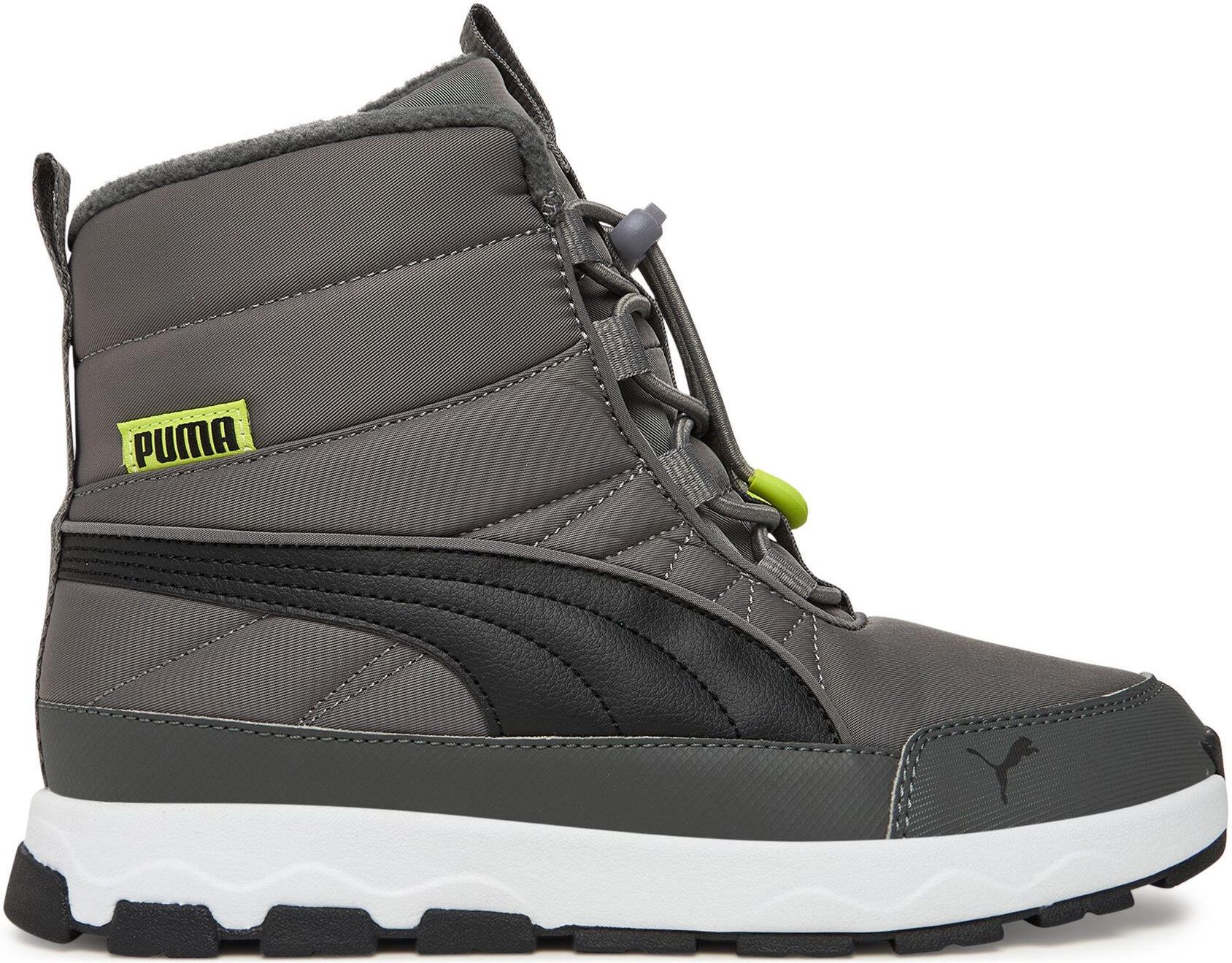 PUMA Evolve Boot JR to zimowe buty dziecięce stworzone z myślą o aktywnych maluchach, które uwielbiają ruch na świeżym powietrzu – niezależnie od pogody. Ten model łączy nowoczesny wygląd z funkcjonalnością, zapewniając ciepło, ochronę i komfort podczas zimowych spacerów, zabawy na śniegu czy codziennego noszenia. Cholewka została wykonana z trwałych materiałów syntetycznych i tekstylnych, które skutecznie chronią przed chłodem i wilgocią, a jednocześnie są łatwe do utrzymania w czystości. Wnętrze buta wykończono miękką wyściółką oraz wkładką SOFTFOAM+, która dopasowuje się do kształtu stopy i zapewnia uczucie miękkości przy każdym kroku. Lekka podeszwa środkowa z pianki EVA dba o amortyzację, a gumowa podeszwa zewnętrzna z głębokim bieżnikiem gwarantuje stabilność i przyczepność nawet na zaśnieżonym lub śliskim podłożu. Elastyczne sznurowadła ze ściągaczem ułatwiają samodzielne zakładanie i zdejmowanie butów, co docenią zarówno dzieci, jak i rodzice. Dodatkowe pętelki na języku i z tyłu cholewki pomagają w szybkim dopasowaniu. PUMA Evolve Boot JR to doskonały wybór na zimowe miesiące – solidny, wygodny i dopasowany do potrzeb dzieci, które nie zwalniają tempa nawet wtedy, gdy temperatura spada. Cholewka: tekstylna, syntetyczna Sznurowadła ze ściągaczem z przodu Podeszwa środkowa: EVA Gumowa podeszwa zewnętrzna Podeszwa z bieżnikiem Detal z taśmy na pięcie Pętelka na języku i z tyłu cholewki dla łatwiejszego wkładania