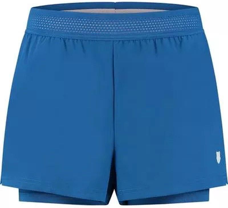 Damskie spodenki K-Swiss Tac Hypercourt Short 4 Women - krótkie spodenki sportowe do ćwiczeń i treningów w hali oraz na powietrzu. Idealne do codziennych treningów jak i na co dzień. Zewnętrzene spodenki wykonane z lekkiego, oddychającego materiału, doskonale odprowadza pot. Jest łatwy w praniu i szybkoschnący. Szeroka, elastyczna perforowana guma w pasie pozwalaja na lepsze dopasowanie spodenek. Dwie boczne otwarte kieszenie po bokach. Rozcięcia na nogawkach dla większej swobody ruchów. Wewnętrzne, przylegające szorty zapewniają komfort i pełna mobilność ruchów. Małe graficzne logo na nogawce. Kolor: classic blue (za producentem) Materiał: 94% poliester, 6% elastyna.