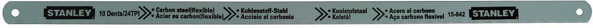 Brzeszczoty do piły ręcznej STANLEY 300 mm 24 TPI (5 szt.) Brzeszczoty uniwersalne do piły ręcznej. Nadaje się do cięcia stali, mosiądzu, aluminium i miedzi. - 24 zęby na cal: Ostrze ogólnego przeznaczenia, odpowiednie do szerokiego zakresu zastosowań cięcia. - Stal węglowa: Zapewnia elastyczność i odporność na pękanie. - Ostrze 300 mm: Uniwersalny rozmiar pasujący do większości ramek piłek do metalu.