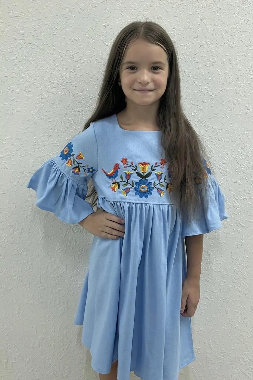 Sukienka Ludowa Z Haftem Dziewczęca Niebieska Ptaszki Len Bawełna 128 Częstochowa