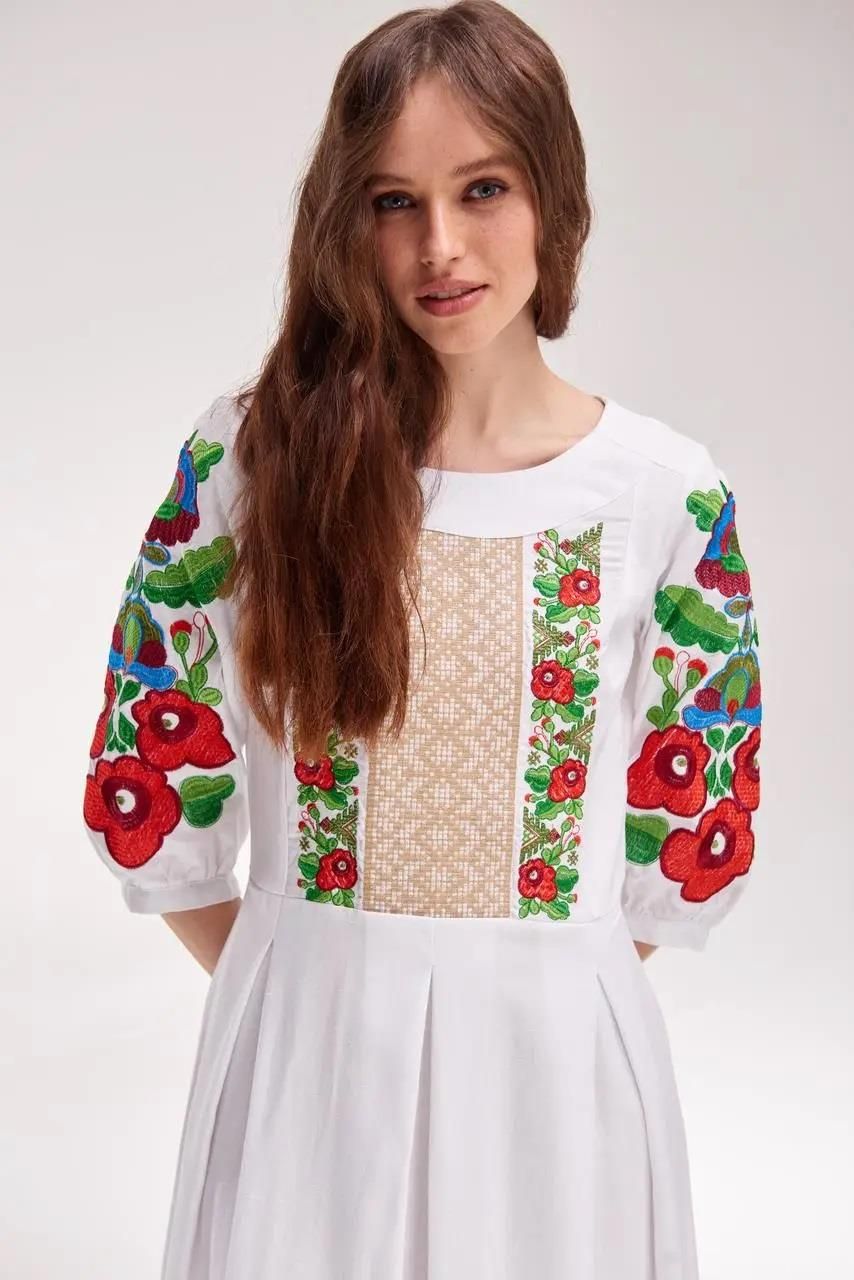 Słowiańska suknia z lnu. Absolutnie wygodna i autentyczna. Z tylu ma zamek. Materiał pięknie się układa i oddycha. Ma piękny wielokolorowy kwiecisty haft. Unikatowe i niepowtarzalne kolory. Wyjątkowa i bardzo wygodna dla ciała mieszanka tkanin: 55% bawełna, 45% len. Haft maszynowy, wysokogatunkowy. Przepiękna i naturalna Słowiańska suknia ze lnu. W chrześcijańskiej interpretacji mak jest symbolem dostatku i pomyślności, odrodzenia sił życiowych. Haft maszynowy gładki . Tablica rozmiarowa: Rozmiar, Szerokość w piersiach, Talia, Szerokość w ramionach, Długość rękawa, Długość wyrobu XS, 45, 38, 36, 43, 126 S, 48, 39, 37, 44, 130 M, 50, 42, 39, 45, 131 L, 51, 44, 39, 46.5, 132 XL, 53, 46, 41, 48, 132 XXL, 57, 48, 44, 50, 136 Pasuje do wesel góralskich, festynów, etnicznych pięknych wieczorów i biesiad, tradycyjnych rodzinnych spotkań. lub na codzień. Zapraszam serdecznie. Ukraiński producent.