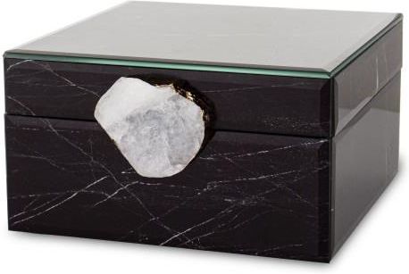 Szkatułka kasetka na biżuterię szklana glamour 8,5x17x15,5 179053Rozmiar: 8,5x17x15,5Kolor: czarny, białyMateriał: mdf, szkło, agat