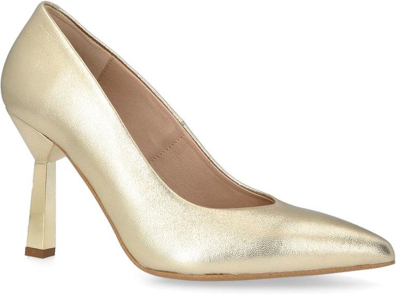 Poszukujesz idealnych butów na własny ślub? Lubisz wysokie obcasy i takie też planujesz założyć na imprezę? Najnowsza propozycja od renomowanej, polskiej marki KOTYL z pewnością skradnie Twoje serce! Buty wykonane z miękkiej skóry naturalnej, która doskonale dopasowuje się do kształtu stopy, zagwarantują Ci komfort podczas użytkowania. Efektowne szpilki na 9 - centymetrowym obcasie typu szpilka to świetny wybór na własny ślub! Przepiękny odcień złota, który nigdy nie wyjdzie z mody wraz ze złotym kontrastowym obcasem tworzy zgraną całość! Złote szpilki, które dodadzą Ci blasku i pewności siebie! Złote szpilki to kwintesencja elegancji, jeden z najchętniej wybieranych przez nasze klientki, kolorów butów wizytowych. Obuwie wizytowe KOTYL to gwarancja jakości i komfortu, marka z długoletnią tradycją i rzeszą wiernych klientek świetnie łączy najnowsze trendy z nieprzemijającą klasyką. W sam raz sprawdzą się ze sukienką lecz nie tylko. Ten ciekawy fason będzie towarzyszył Ci z powodzeniem na wielu imprezach okolicznościowych - w tak wygodnych butach będziesz mogła cieszyć się tańcem przez wiele godzin. Buty wizytowe to nasza specjalność, z szerokiej oferty z pewnością wybierzesz Te Jedyne!
