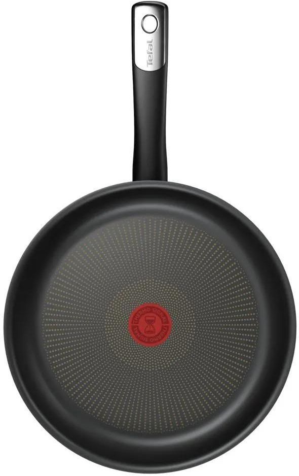 Tefal Patelnia Perfect Touch 24cm Odkryj Perfect Touch firmy Tefal, gamę naczyń kuchennych, która wykorzystuje naszą wiedzę w służbie Twojego stylu. Ta patelnia jest wyposażona w trwałą i bezpieczną powłokę zapobiegającą przywieraniu, która zapewnia nieskazitelny poślizg i łatwe czyszczenie. Posiada również wskaźnik ciepła Thermo-Signal zapewniający wyjątkowe przypiekanie oraz zaawansowaną technologię indukcyjną do szybkiego i równomiernego gotowania. Wykonana według najwyższych standardów jakości, z korpusem wykonanym w 100% z recyklingowanego aluminium (recyklingowane aluminium stanowi co najmniej 55% całkowitego produktu), jest idealnym dodatkiem do Twojego arsenału kulinarnego! Zalety Titanium non-stick: Ta wysokiej jakości powłoka jest do 3 razy trwalsza niż standardowa powłoka Titanium firmy Tefal  zapewniając wydajność, która wytrzymuje nawet najbardziej intensywne użytkowanie. Zaawansowana indukcja Dno Thermo-Fusion zapewnia szybkie nagrzewanie i równomierne rezultaty gotowania. Kompatybilne z kuchenkami gazowymi, elektrycznymi, ceramicznymi i indukcyjnymi. Korpus w 100% z przetworzonego aluminium* Obudowa w 100% z przetworzonego aluminium* pomaga zmniejszyć wpływ na środowisko: przetworzone aluminium zużywa do 90% mniej energii niż aluminium pierwotne.  *materiały przetworzone stanowią co najmniej 55% całkowitego produktu Podstawowy format patelni Idealny do opanowywania nowych przepisów jak profesjonalista, od sola meunière w jakości restauracyjnej po stek z antrykotu obsmażony do perfekcji. Bezpieczna powłoka zapobiegająca przywieraniu W ramach naszego zaangażowania w bezkompromisowe standardy bezpieczeństwa wszystkie nasze powłoki zapobiegające przywieraniu do żywności są wolne od PFOA, ołowiu i kadmu.