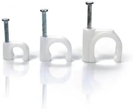 Uchwyt kablowy z gwoździem do mocowania przewodów okrągłych. Rozmiar: 8,0 mm Wysokość: 9,6 mm Materiał: polipropylen + stal Temperaura pracy: -40°C +85°C Ilość w opakowaniu: 100 szt. Uchwyty kablowe z gwoździem typu FLOP O dla przewodów okrągłych, przeznaczone są do mocowania przewodów lub poszczególnych żył kabla do podłoża za pomocą gwoździa. Uchwyty tego typu stosuje się wtedy gdy zachodzi konieczność uzyskania szybkiego i pewnego zamocowania, szczególnie w podłożach drewnianych lub gazobetonowych. Mocowanie odbywa się poprzez wbicie hartowanego gwoździa do podłoża. W przypadku wystąpienia konieczności przytwierdzenia przewodu do podłoża o wysokim stopniu twardości (np. beton) zaleca się stosowanie kołków rozporowych lub innego rodzaju uchwytów.