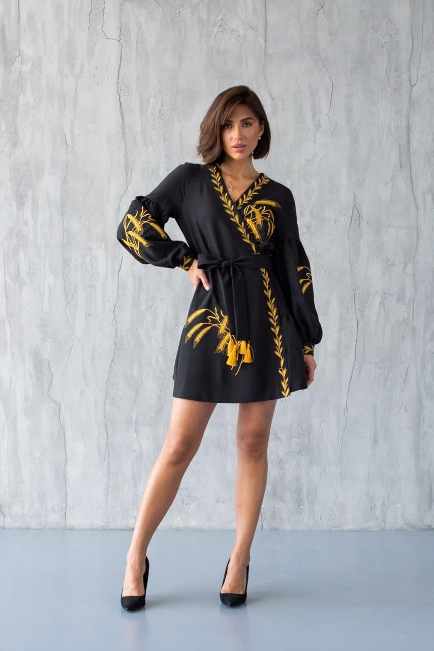 Ta sukienka to ucieleśnienie Ukraińskiego stylu i wolności. Wykonana przez Ukraińskich dizajnerów, absolutna nowinka. Złote kłosy symbolizują błogosławieństwo i obfitość. Kłos symbolizuje plonność i dostatek, a złoty kolor dodaje mu elementu luksusu i bogactwa. Wygląda naprawdę bardzo ładnie i elegancko. Jakość haftu zachwyca. Zapraszam serdecznie.
