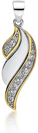 Elegancki częściowo rodowany, a częściowo pozłacany srebrny wisiorek w kształcie skrzydła anioła zdobiony białymi cyrkoniami, model Z1727CGR.