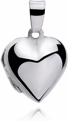 Delikatny srebrny otwierany wisiorek o kształcie serca, polerowany na wysoki połysk, model ALP009.