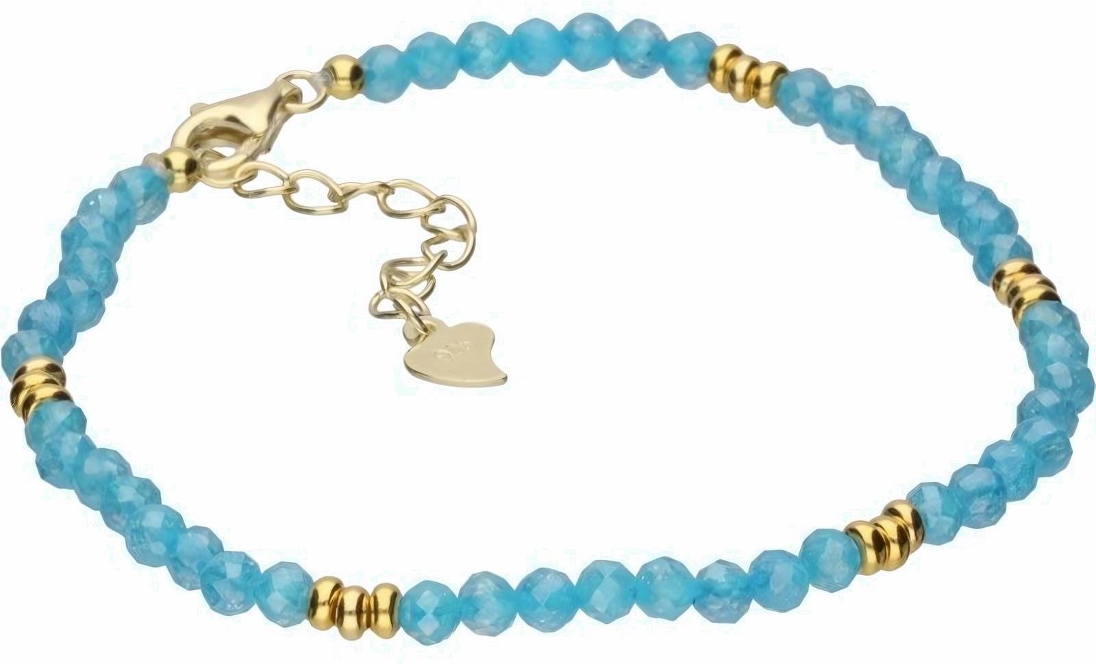 Delikatna bransoletka wykonana z nawleczonych na żyłkę jubilerską fasetowanych kuleczek z akwamarynu, przyozdobionych kółeczkami z pozłacanego srebra. Akwamaryn jest nazywany kamieniem odwagi. Przeznaczony jest dla ludzi nieśmiałych, mających problem z asertywnością czy też szczerym wyrażaniem uczuć. Dzięki akwamarynowi, takie osoby wreszcie mogą powiedzieć co myślą i czują, bez wyrzutów sumienia, że mogą tym kogoś zranić.