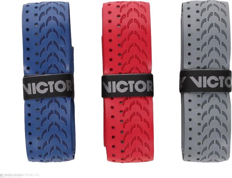 Victor Fishbone Grip - wysokiej jakości owijka podstawowa badmintona i squasha. Lepka powierzchnia zapewnia pewny chwyt. Gruba perforacja doskonale odprowadza nadmiar wilgoci na zewnątrz a żłobiony bieżnikzdecydowanie poprawia uchwyt i podnosi komfort użytkowania. Warstwa kleju od spodu ułatwia montaż. Do każdej owijki taśma do zakańczania. Długość: ok. 100 cm; Szerokość: ok. 25 mm; Kolor: biały, czarny, czerwony, niebieski, szary, Cena za 1 owijkę.