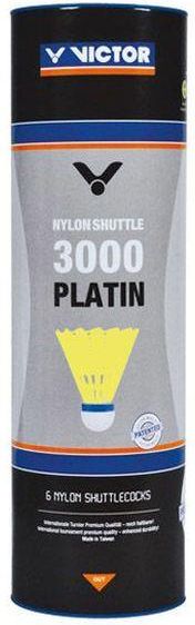 Victor 3000 Platin Shuttle - najwyższy model nylonowych lotek do badmintona firmy Victor. Możliwośc rozgrywania zarówno rozgrywek turniowych jak i zaawansowanych treningów. Do ich produkcji użyto naturalnego korka portugalskiego oraz wysokiej jakości nylonowego koszyka. Charakteryzują się najbardziej zbliżonymi parametrami lotu do lotek piórowych oraz dużą wytrzymałością. Kolor koszyka: żółty, Prędkość: wolna (zielone), średnia (niebieskie), szybkie (czerwone). Cena za 1 tubę (6 szt.) Dobór prędkości lotek jest ściśle zależny od temperatury otoczenia. Przy niższej temperaturze powietrza koszyczek staje się twardszy i bardziej podatny na uszkodzenia mechaniczne, natomiast w gorące dni koszyczek staje się miękki i mniej podatny na uszkodzenia.