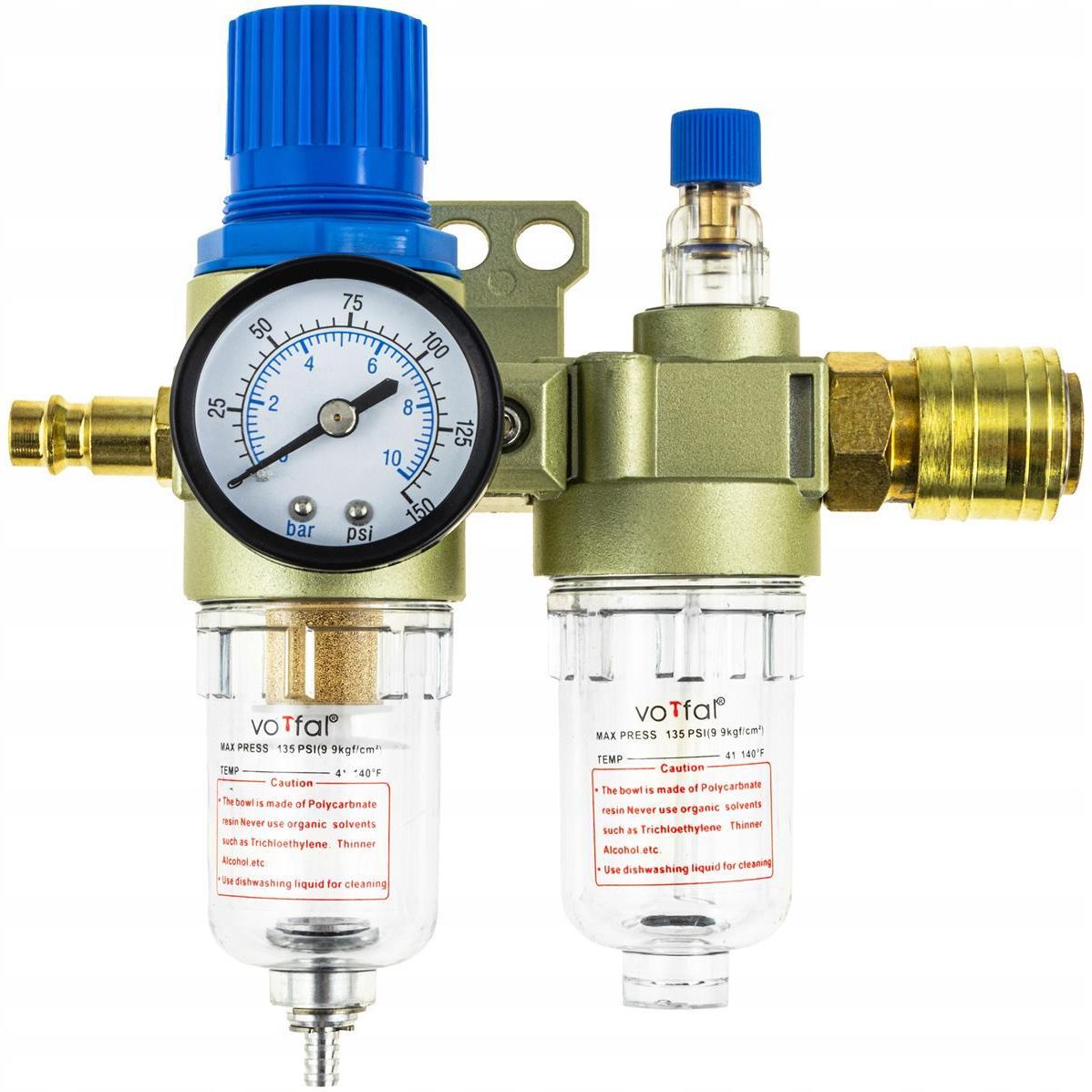 REDUKTOR POWIETRZA FILTR NAOLEJACZ SPRĘŻARKI ODWADNIACZ DO KOMPRESORA 1/4" CO WYRÓŻNIA NASZ PRODUKT 1✔️Oczyszczanie powietrza z wilgoci, oleju i zanieczyszczeń, co zapewnia ochronę narzędzi i urządzeń. Wytrzymała konstrukcja ze stopu aluminium i poliwęglanu, odporna na uszkodzenia mechaniczne. Łatwa konserwacja dzięki zaworowi spustowemu umożliwiającemu regularne opróżnianie filtra z wody. Szeroki zakres ciśnienia roboczego i temperatury roboczej, umożliwiający różnorodne zastosowania przemysłowe. ZAPEWNIA BEZPIECZEŃSTWO I WYDAJNOŚĆ Wysokiej jakości reduktor ciśnienia z filtrem powietrza i odwadniaczem 1/4" gwarantuje optymalną pracę systemów pneumatycznych. Dzięki niemu możliwe jest utrzymanie właściwego ciśnienia powietrza oraz jego oczyszczenie z wilgoci, oleju i innych zanieczyszczeń, co zapobiega awariom i wydłuża żywotność narzędzi i urządzeń. TRWAŁOŚĆ I NIEZAWODNOŚĆ Wytrzymała konstrukcja ze stopu aluminium oraz poliwęglanu zapewnia odporność na uszkodzenia mechaniczne, nawet w trudnych warunkach przemysłowych. Solidne wykonanie gwarantuje długotrwałą i bezawaryjną pracę instalacji. ŁATWA KONSERWACJA Regularne opróżnianie filtra z wody, poprzez użycie zaworu spustowego, jest niezwykle proste i pozwala utrzymać urządzenie w optymalnym stanie technicznym. Brak konieczności skomplikowanych czynności serwisowych czyni eksploatację wygodną i bezproblemową. SZEROKI ZAKRES ZASTOSOWAŃ Dopuszczalne ciśnienie robocze od 0,5 do 9 barów oraz temperatura robocza od 0°C do +60°C sprawiają, że reduktor z filtrem nadaje się do wielu różnych zastosowań przemysłowych, zarówno w środowiskach chłodnych, jak i ciepłych. SPECYFIKACJA Stan: Nowy Waga produktu z opakowaniem jednostkowym: 0.5 kg Marka: Vorfal EAN (GTIN): 5905475660900 Kod producenta: V02012_1