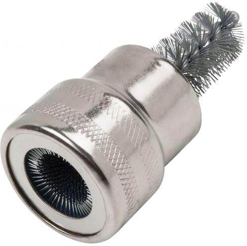 SZCZOTKA DO CZYSZCZENIA ZACISKOW I KLEM AKUMULATORA CECHY PRODUKTU: Specjalnie wyprofilowany kształt szczotki umożliwia oczyszczenie klem oraz styków akumulatora z osadu który się na nich znajduje. Po jednej stronie znajduje się specjalna szczotka do czyszczenia klem, zaś z drugiej strony szczotka do czyszczenia styków akumulatora. Czyszczenie baterii jest niezbędnym elementem operacyjnym do prawidłowego działania systemu ładowania oraz zasilania samochodu. Po czynnościach czyszczących warto jest posmarować klemy i styki specjalną pastą wspomagającą połączenie elektryczne. Szczotki są wykonane ze stali chromowo-niklowej co daje dużą żywotność temu narzędziu oraz dokładne czyszczenie klem i styków.