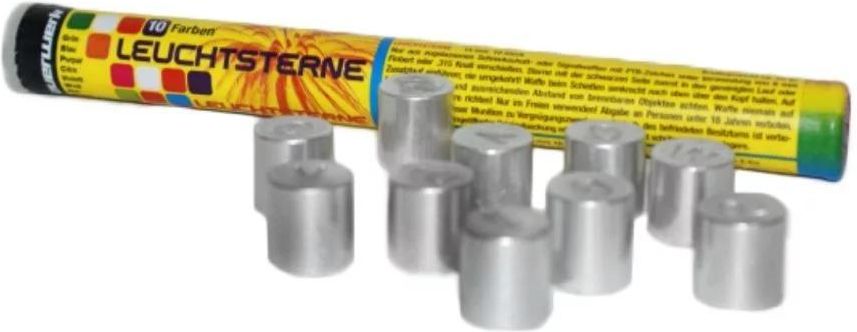 Zestaw rac ZINK Signal 10F - 10 sztuk 1,4 G Niemiecka marka Zink Feuerwerk jest znana z wysokiej jakości wyrobów pirotechnicznych, co gwarantuje niezawodność i doskonałe efekty wizualne. Zestaw oferuje aż 10 unikalnych kolorów, zapewniając niezapomniane widowisko. Komplet niemieckich rac pistoletowych Zink Feuerwerk Leuchtsterne przeznaczonych do pistoletu hukowego, idealnych na wydarzenia sylwestrowe, imprezy plenerowe oraz jako sygnał alarmowy. Po wystrzeleniu race wznoszą się wysoko, tworzyć spektakularny efekt komety z intensywnym, jednokolorowym rozbłyskiem i efektem dźwiękowym. Cechy produktu - Rodzaj produktu: Race pistoletowe (kometowe). - Ilość w zestawie: 10 sztuk. - Dostępne kolory: Biały, Fiolet, Czerwony, Żółty, Niebieski, Zielony, Turkusowy, Purpurowy, Pomarańczowy oraz Bordo. - Efekt: Długi, jednokolorowy rozbłysk z sygnałem dźwiękowym. - Przeznaczenie: Do pistoletów hukowych z nasadką do wystrzeliwania rac o kalibrze 15 mm. Właściwości techniczne - Maksymalna wysokość wystrzału: Około 100 metrów. - Widoczność: Efekty świetlne widoczne nawet z kilku kilometrów. - Opakowanie: Papierowa rurka zabezpieczająca. Przeznaczenie Race sygnałowe Zink Feuerwerk Leuchtsterne doskonale nadają się: - Na imprezy sylwestrowe i okolicznościowe. - Jako sygnał alarmowy w sytuacjach awaryjnych. - Do treningów z pistoletami hukowymi. Bezpieczeństwo użytkowania Podczas korzystania z produktu należy zachować szczególną ostrożność i przestrzegać instrukcji obsługi. Produkt przeznaczony wyłącznie dla osób pełnoletnich, zgodnie z lokalnymi przepisami prawa. - Kolor: Biały, Fiolet, Czerwony, Żółty, Niebieski, Zielony, Turkusowy, Purpurowy, Pomarańczowy oraz Bordo - Wysokość wystrzeliwanej racy: 100 m