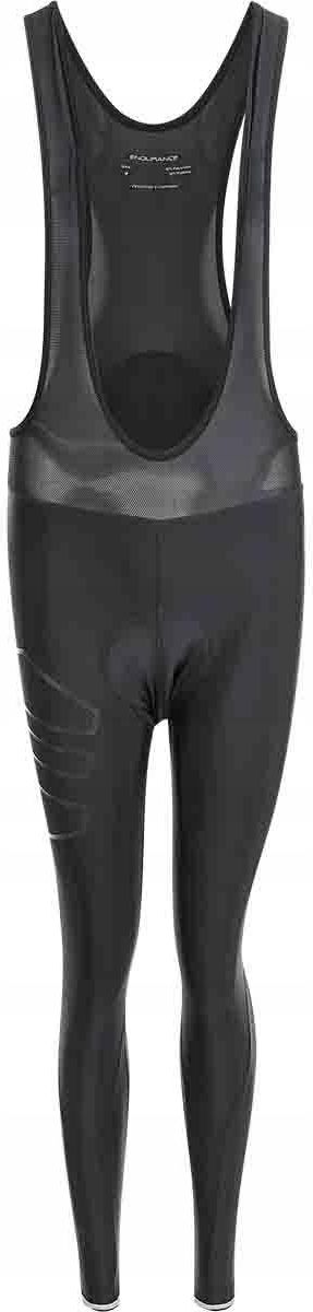 Spodenki rowerowe męskie, uszyte z materiału technicznego LYCRA, który charakteryzuje się lekkością włókien (82% poliamidu i 18% elastanu) i aerodynamiką. Spodenki przyjemnie przylegają do ciała zastosowany materiał daje dużą swobodę ruchu. Na dole nogawek od wewnętrznej strony są gumki które przeciwdziałają przesuwaniom się nogawkom. Spodenki mają wkładkę Trójwymiarowa, anatomicznie ukształtowana wkładka Hygienic® z elastycznego materiału o bardzo ścisłej strukturze, który zapewnia optymalną regulację wilgotności. Rozciąga się w 4 kierunkach. Górna warstwa zrobiona jest z wentylowanej pianki o otwartych porach, a druga warstwa z absorbującej wilgoć, perforowanej pianki. Różne grubości zapewniają amortyzację. Ukształtowane „skrzydła” gwarantują idealne dopasowanie. Szybko schnie. Spodenki są jednolitego czarnego koloru z małym firmowym logo na lewej nogawce. Rozmiar M.
