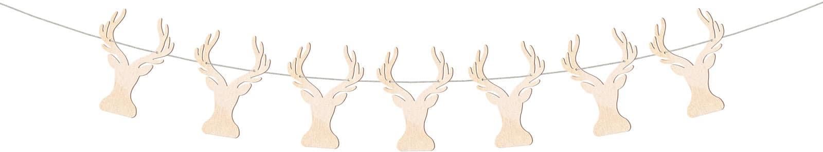Girlanda z zawieszkami w kształcie Renifera wykonana z drewna. Idealne do powieszenia jako dekoracja na Boże Narodzenie. Długość sznurka: ok. 10 m, 12 zawieszek. Wysokość zawieszki ok. 13 cm.