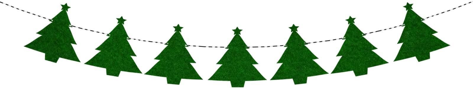 Girlanda na Boże Narodzenie Choinka - 12 szt. Kod produktu: GIR-BNC01-F-102 Girlanda z zawieszkami w kształcie choinki wykonana z filcu. Idealne do powieszenia jako dekoracja na Boże Narodzenie. Długość sznurka: ok. 10 m, 12 zawieszek. Wysokość zawieszki ok. 13 cm.