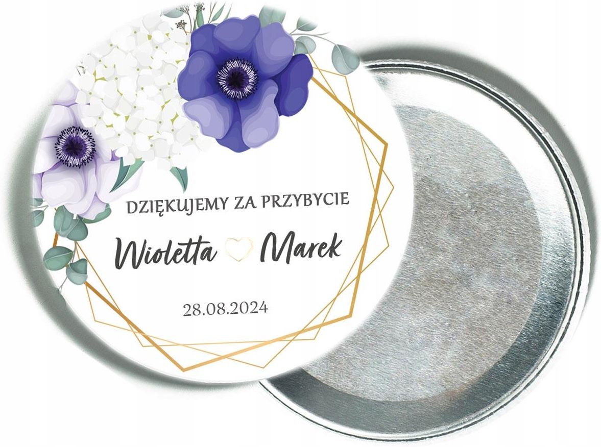 Personalizowane podziękowanie z magnesem na Wesele - 12 szt. Kod produktu: PODM-P-WES48 Personalizowane podziękowanie z magnesem na ślub/wesele dla gości w motywie kolorowych kwiatów. Imiona państwa młodych oraz datę wesela prosimy o podawanie w wiadomości do sprzedającego. Średnica: 5,5 cm. Opakowanie: 12 szt.