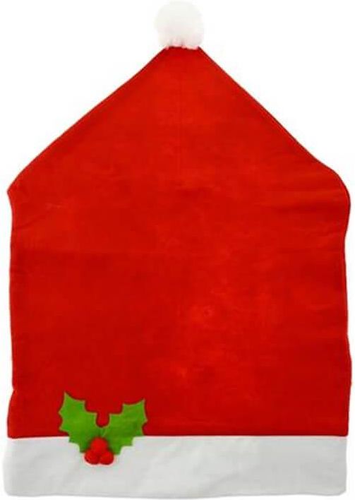 Pokrowiec "Czapka Mikołaja" na krzesło. Opakowanie zawiera 1 pokrowiec na krzesło z prostym lub okrągłym oparciem. Doskonałe na okolicznościowe przyjęcie urodzinowe, weselne lub inną imprezę. Pokrowiec na oparcie krzesła wykonany w kształcie czapki Świętego Mikołaja z poliestru imitującego welur w kolorze czerwonym. Dół z tego samego materiału w kolorze białym. Góra zwieńczona białym pomponem. Ozdobna aplikacja w kształcie zielonych listków z owocami umieszczona po jednej stronie pokrowca. Pokrowiec o wymiarach: 49 x 72 centymetry.
