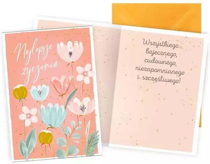 Uniwersalna kartka urodzinowa, imieninowa z życzeniami dla dziewczyny, kobiety - letnia łąka firmy Kukartka Letni klimat, letnie kwiaty, same dobre uczucia składamy na ręce solenizantki ! Z okazji imienin lub urodzin, proponujemy nietuzinkową kartkę z napisem na pierwszej stronie: "Najlepsze życzenia" oraz prostymi i jak bardzo cennymi życzeniami w środku. Gdy chcesz winszować solenizantce togo co jest napisane w karnecie, wystarczy złożyć swój podpis i gotowe. Karnet jest w komplecie z kopertą. Specyfikacja Firma: Kukartka Seria: Passion Premium Motyw: letnia łąka Wymiary: 16,5 x 11,5 cm Opakowanie: 1 szt. Materiał: papier Zestaw: kartka + koperta