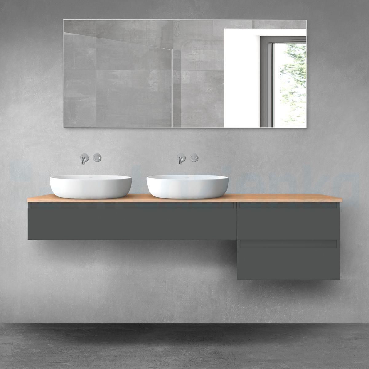 - Szerokość: 180 cm - Głębokość: 46.4 cm - Wysokość: 48.6 cm - Rodzaj: podumywalkowa wisząca - Kolor: grafit, dąb