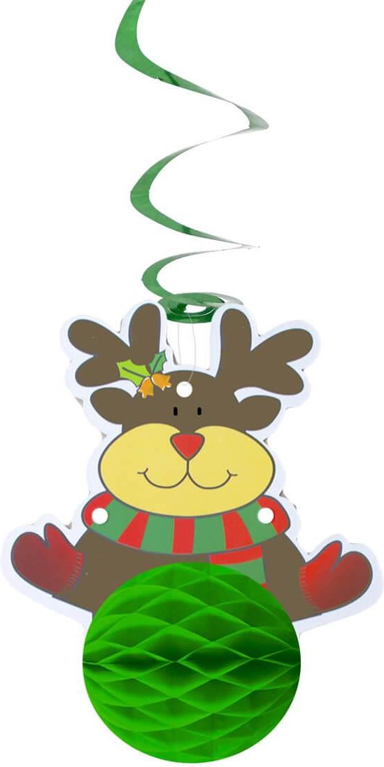 Dekoracja wisząca świderek Renifer z rozetkową kulą w kolorze zielonym, idealna na święta Bożego Narodzenia. Wysokość: 19 cm. Opakowanie: 1 szt.