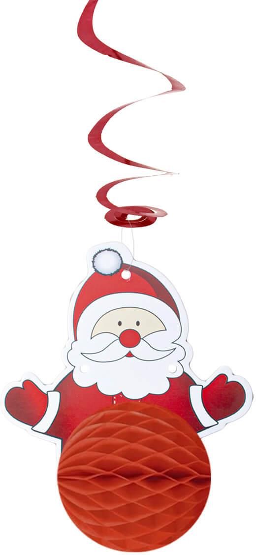 Dekoracja wisząca świderek Święty Mikołaj z rozetkową kulą w kolorze czerwonym, idealna na święta Bożego Narodzenia. Wysokość: 19 cm. Opakowanie: 1 szt.