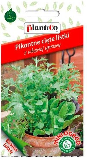 Nasiona warzyw marki PlantiCo.Pikantna mieszanka na cięte listki z serii Mini Ogród do uprawy w pojemnikach na balkonach i tarasach. Świeże listki szybkorosnących gatunków o pikantnym smaku (cykoria, endywia, mizuna, sałata). Doskonały składnik sałatek i dodatek do wielu potraw. Mogą być zbierane od wczesnej fazy (cięte listki -Baby leaf). W warunkach domowych mogą być uprawiane w okresie wczesno wiosennym, gdy istnieje duże zapotrzebowanie na witaminy.