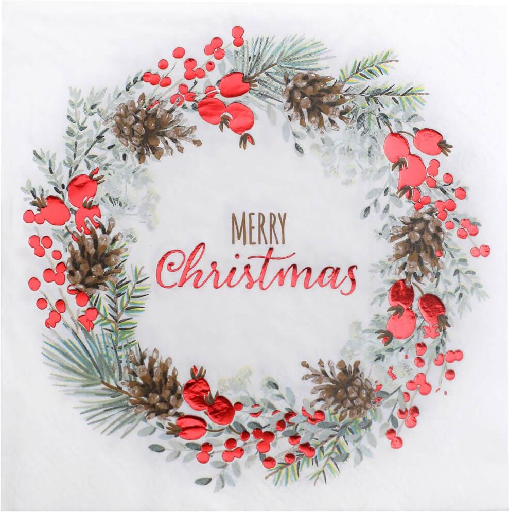 Serwetki Bożonarodzeniowe Merry Christmas Czerwone 33 Cm 20 Szt. 65634 Człuchów