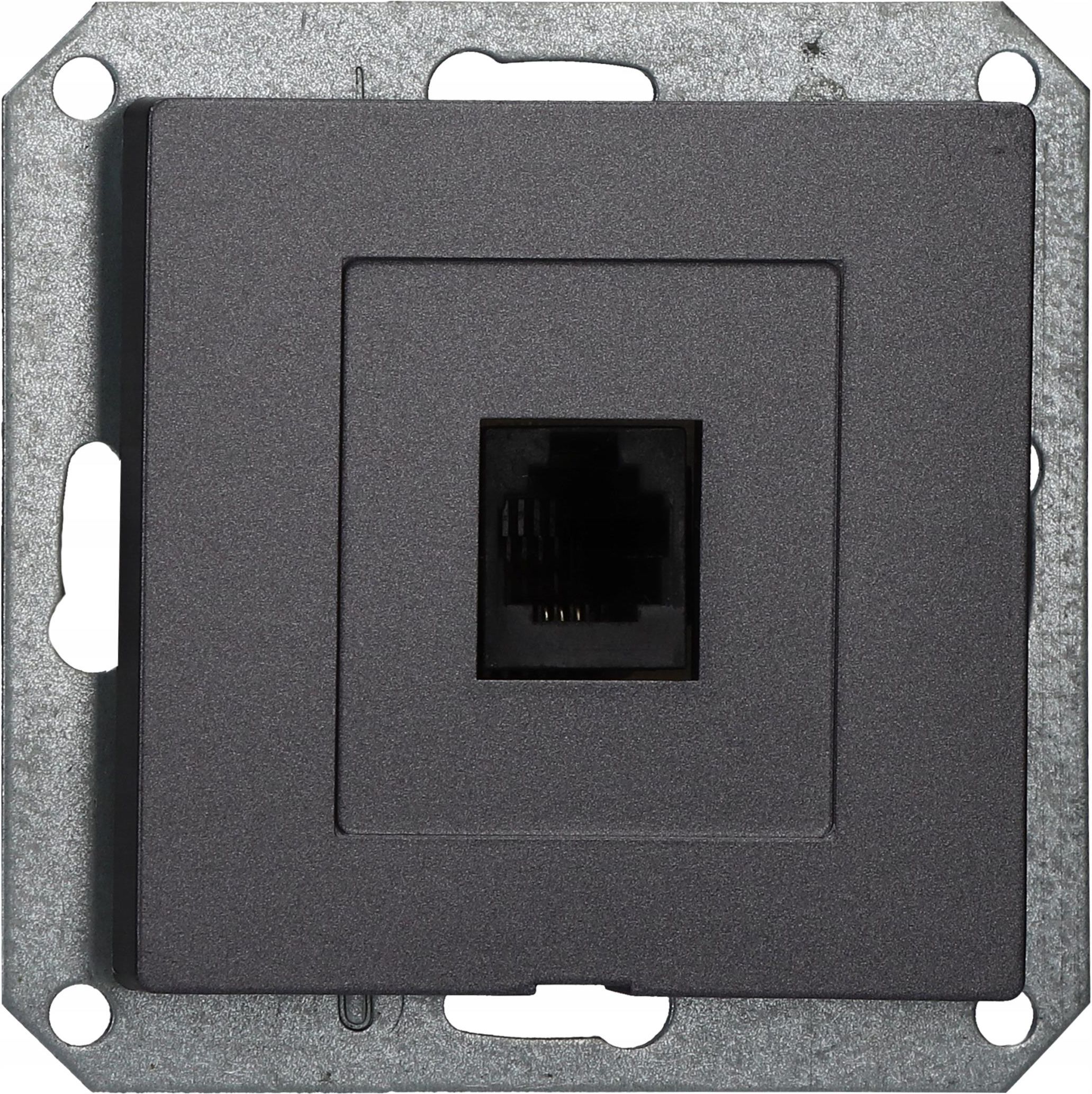 Gniazdo telefoniczne Serii MAGIC w kolorze grafitowym. Model: GTP-11 Pr Moduł grafit Moduł gniazda bez ramki. Parametry gniazda: 6-PIN RJ11 RJ14 kategoria 3 Wkładka Keystone Montaż przewodów: beznarzędziowy Montaż gniazda: puszka podtynkowa Ø60 Rodzaj materiału: tworzywo ABS Seria modułowa, można …
