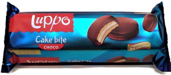 Luppo Cake Bite 184 g CAKE BITE - Wyjątkowe połączenie niesamowitej mlecznej czekolady, biszkoptowego ciastka oraz nadzienia piankowego Marshmallow. Ta propozycja na pewno skradnie serca każdemu. W opakowaniu znajdziemy 8 ciasteczek całkowicie oblanych polewą czekoladową, każde o wadze 23 g. Waga opakowania: 184 g