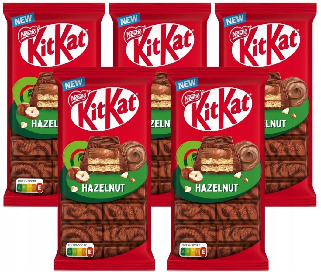 Zrób sobie przerwę i odkryj nowy, pyszny sposób na chwilę relaksu z tabliczkami KitKat – połączeniem chrupiącego wafelka, orzechowego nadzienia i wyjątkowej czekolady z efektem marblingu. Odpręż się, otwórz, połam i ciesz się satysfakcjonującym rytuałem dzielenia się smakiem. KitKat w formacie tabliczek to • Niezwykła przekąska łącząca chrupiący wafelek z orzechowym nadzieniem • Gruba warstwa mlecznej i deserowej czekolady z efektem marmurkowej tekstury • Idealny wybór do dzielenia się z bliskimi lub cieszenia się chwilą w pojedynkę • Produkt, który zawiera kakao z certyfikatem Rainforest Alliance Składniki: cukier, miazga kakaowa¹, tłuszcze roślinne (palmowy, shea), mąka pszenna, odtłuszczone mleko w proszku, tłuszcz kakaowy¹, preparat serwatkowy w proszku (z mleka), syrop glukozowy, tłuszcz mleczny, pasta z orzechów laskowych (2%), kakao w proszku o obniżonej zawartości tłuszczu¹, emulgator (lecytyny), sól, naturalny aromat, substancja spulchniająca (węglany sodu). ¹Rainforest Alliance Certified. Czekolady oprócz tłuszczu kakaowego zawierają tłuszcze roślinne. Oznakowanie Nutri-Score: Nutri-Score – E. Może zawierać: orzeszki ziemne. Podaruj sobie chwilę słodkiej przyjemności! Zamów KitKata z nadzieniem orzechowym już teraz, spróbuj nowości i ciesz się niepowtarzalnym smakiem!