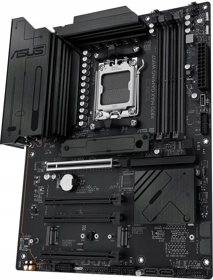 ASUS X870 MAX GAMING WIFI7 AMD X870 Gniazdo AM5 ATX ASUS X870 MAX GAMING WIFI7. Producent procesora: AMD, Gniazdo procesora: Gniazdo AM5, Procesor: AMD Ryzen 7000 Series, AMD Ryzen 8000 Series, AMD Ryzen 9000 Series. Obsługiwane rodzaje pamięci: DDR5-SDRAM, Maksymalna pojemność pamięci: 256 GB, Typ …