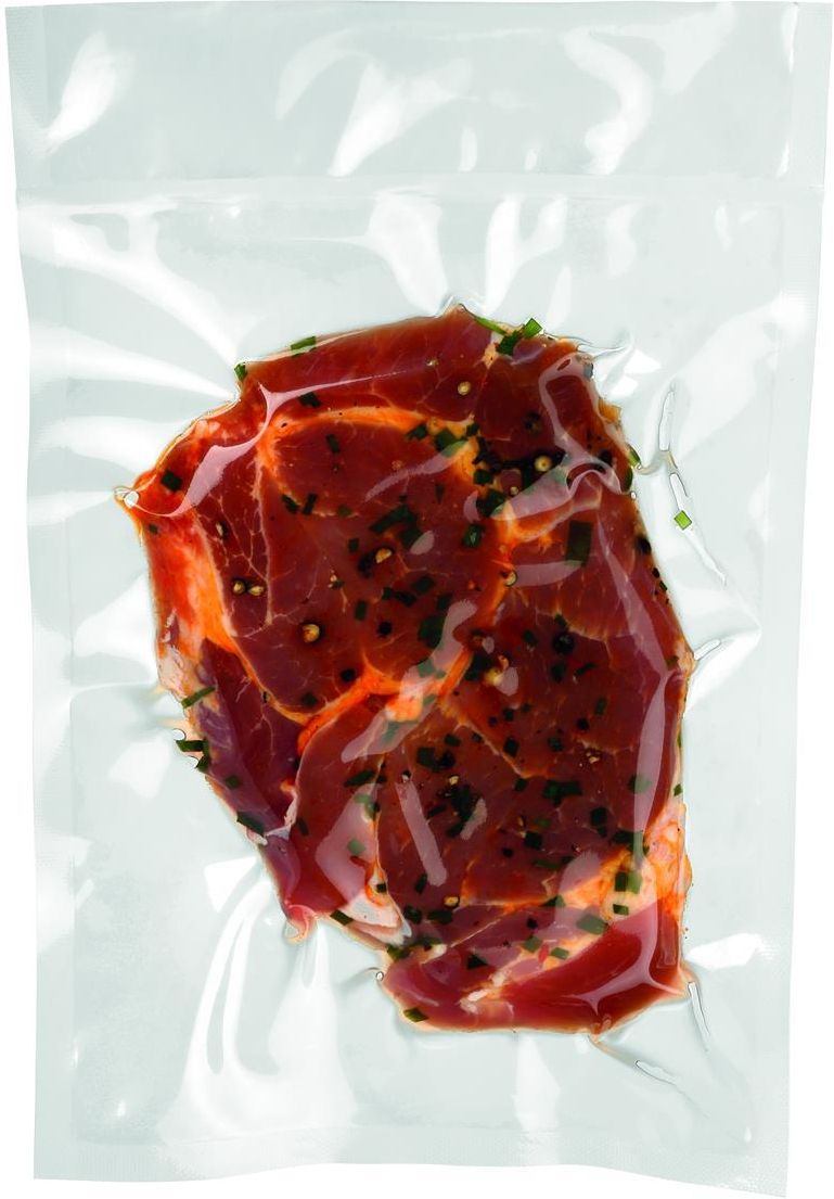 Worki do pakowarek komorowych 20 x 30 cm 100 sztuk - B-300312 Wytrzymałe czterowarstwowe worki marki Bartscher umożliwiają hermetyczne pakowanie a tym samym przedłużanie trwałości rozmaitych produktów spożywczych takich jak sery, mięsa, wędliny. Pozwalają także na zabezpieczania dokumentów, elementów elektronicznych, wyrobów chemicznych, farmaceutycznych czy medycznych przed niekorzystnym wpływem czynników zewnętrznych. Dzięki czterowarstwowej budowie oferowane worki są niezwykle wytrzymałe. Nie zawierają zmiękczaczy i nie wpływają na smak ani zapach pakowanych artykułów spożywczych. Worki mogą być stosowane w temperaturze do 120°C więc sprawdzą się w kuchni molekularnej do gotowania metodą sous-vide. W opakowaniu znajduje się 100 worków o wymiarach 200 x 300 mm. Worki przeznaczone są do użycia w pakowarkach komorowych. Specyfikacja Artykuł: Worki K2,5L do pakowarek komorowych Nr katalogowy: B-300312 Stan artykułu: Nowy Właściwości termiczne: Do 120°C Wymiary worka: 200 x 300 mm Wersja: Gładkie Pojemność: 2,5 l Ilość w opakowaniu: 100 szt.