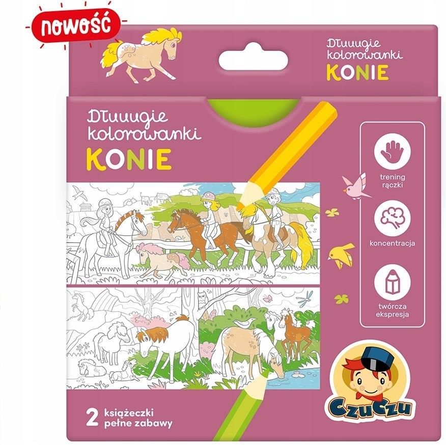 Niech kreatywna zabawa z konikami zacznie się! Zapraszamy do rozbudzania artystycznych zdolności i logicznego myślenia z uroczymi mieszkańcami naszej barwnej stadniny. Nasza propozycja to zestaw składający się z dwóch rozkładanych harmonijkowo książeczek, które są pełne kreatywnych propozycji zabaw. To doskonałe rozwiązanie dla małych miłośników koni i pasjonatów jazdy konnej! Na jednym boku książeczki zobaczycie długą kolorowankę, natomiast na drugim czekają na Was różnorodne zadania, które zostały skrojone na miarę zdolności przedszkolnych dzieci. Kolorowanie i łamigłówki wspierają wesołe i edukacyjne zabawy. Co więcej, nasz zestaw z charakterystyczną kreatywnością umożliwia zabawę na wiele sposobów, dostosowując się do rosnących wraz z dziećmi umiejętności i zainteresowań. Doskonalenie umiejętności w przyjemny sposób Bawcie się, kolorujcie, rozwiązujcie zadania i rozwijajcie swoje zdolności, nie zapominając oczywiście o świetnej zabawie! EAN: 9788366501997