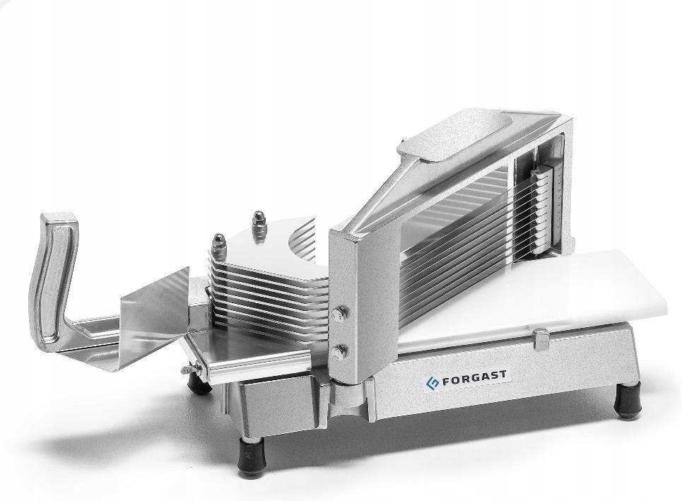 Szatkownica Forgast przeznaczona jest do ręcznego krojenia w plastry miękkich warzyw i owoców, zwłaszcza pomidorów. Dzięki wyjątkowo ostrym nożom i precyzyjnemu mechanizmowy możliwe jest uzyskanie identycznego efektu krojenia za każdym razem. Ręczny mechanizm krojenia daje pełną niezależność i możliwość pracy w każdych warunkach. Dane techniczne Wymiary (dł; szer; wys):39x20x23 cm Waga:10.5 kg Grubość cięcia:6.3 mm Dzięki małym rozmiarom, niskiej wadze oraz wytrzymałości urządzenie świetnie sprawdza się w profesjonalnej gastronomii. Idealnie nadaje się do restauracji, barów, lokali typu bistro lub fast food, food trucków, firm cateringowych lub stoisk plenerowych. Szatkownica Forgast zapewnia wysoką precyzję pracy i wytrzymałość – są to cechy które są niezbędne w każdej profesjonalnej kuchni. Z jej pomocą krojenie warzyw i owoców w idealny kształt kostki i słupków jest niezwykle proste i szybkie. Z pewnością doceniona zostanie w każdej restauracji, barze, food trucku.