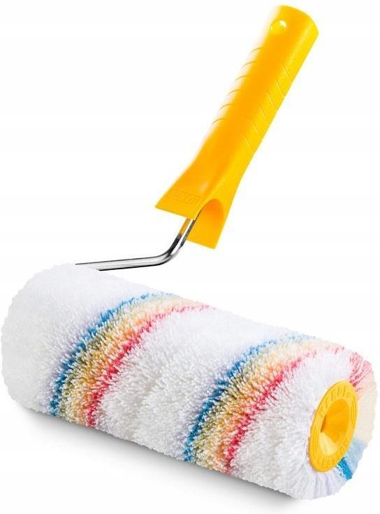 WAŁEK ELITAKOLOR 25 CM HARDY Hardy Profesjonalny wałek malarski Elitakolor Hardy o długości 25 cm, idealny do malowania ścian i sufitów. Wyposażony w pokrycie Elitakolor zapewniające równomierne rozprowadzenie farby. Odporny na zużycie, nadaje się do różnych rodzajów farb. Doskonały wybór zarówno dla amatorów, jak i profesjonalistów, oferując komfort i precyzję pracy. Główne cechy Szerokość wałka: 25 cm Wysokość runa: 18 mm, idealna do chropowatych powierzchni Przeznaczony do farb emulsyjnych, w tym elewacyjnych i wodorozcieńczalnych Długie runo zapewnia dostęp do zagłębień w szorstkich powierzchniach Materiał: poliakryl, charakteryzujący się dużą wytrzymałością i odpornością na ścieranie Wyposażony w DuoSystem - system dwóch łożysk dla lepszego prowadzenia i uniknięcia zacieków Lekki, solidny uchwyt z tworzywa, pasujący do kijów teleskopowych Hardy Pozostałe informacje Informacje ogólne o produkcie Wałek Malarski Hardy Elitakolor o szerokości 25 cm i wysokości runa 18 mm to idealne narzędzie do malowania szorstkich i mocno chropowatych powierzchni. Dzięki swojej budowie, doskonale nadaje się do aplikacji na tynki strukturalne oraz elewacje, zapewniając wysoką jakość wykończenia. Przeznaczony do farb emulsyjnych, w tym elewacyjnych i innych farb wodorozcieńczalnych, ten wałek umożliwia uzyskanie równomiernego pokrycia nawet w trudnodostępnych miejscach. Charakterystyka Wyposażony w długie runo, wałek Hardy Elitakolor dociera do wszelkich zagłębień w chropowatych powierzchniach, co czyni go bardzo efektywnym narzędziem malarskim. Włókno poliakrylowe, z którego wykonano poszycie, zapewnia nie tylko dużą trwałość, ale także odporność na ścieranie, co pozwala na wielokrotne użytkowanie. Innowacyjny system DuoSystem – z dwoma łożyskami – gwarantuje płynność ruchu, eliminując problem zacinania się wałka oraz minimalizując ryzyko zacieków i chlapnięć. Rączka, wykonana z lekkiego i wytrzymałego materiału, została specjalnie wyprofilowana, aby zapewnić pewny chwyt i komfort użytkowania, pasując do wszystkich teleskopowych kijów Hardy z mocowaniem "na wcisk". Zastosowanie Malowanie tynków strukturalnych Malowanie elewacji zewnętrznych Farby emulsyjne i wodorozcieńczalne Powierzchnie chropowate i szorstkie Osprzęt malarski w zestawach z teleskopowymi kijami Hardy