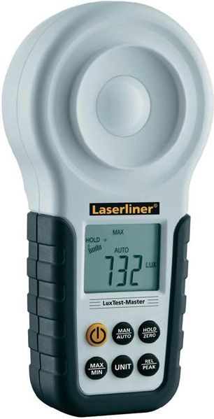 Luksomierz Laserliner 082.130A Profesjonalny miernik natężenia oświetlenia Laserliner LuxTest- Master Miernik Lux od Laserliner to profesjonalny miernik mocy oświetlenia do pomiaru światła w miejscach pracy, biurach, obiektach użyteczności publicznej i pomieszczeniach przemysłowych. Czuła fotodioda z korekcją cosinus wykrywa światło z szerokich obszarów kątowych. Cechy szczególne Czuła fotodioda z korekcją cosinus Funkcja Peak w celu wykrycia szybkich zmian światła Funkcja zerowania do ustawiania krzywej czujnika Charakterystyka Pomiar natężenia oświetlenia Czuła fotodioda z korekcją cosinus Funkcja pomiaru względnego do pomiaru referencyjnego i porównawczego Funkcja Peak w celu wykrycia szybkich zmian światła Automatyczne i ręczne przełączanie zakresu Funkcja zerowania do ustawiania krzywej czujnika Wskaźnik wartości min/maks. Funkcja hold Złącze statywu 1/4" Dane techniczne Dalsze dane techniczne: Czujnik: krzemowa fotodioda Zakres widma: 320 - 730 nm Zasilanie: bateria blokowa 9 V Dokładność pomiarowa natężenia oświetlenia: 3 % Długość produktu: 43 mm Funkcje pomiarowe: natężenie oświetlenia Kalibracja: Fabryczna (bez certyfikatu) Maksymalny zakres pomiaru natężenia oświetlenia: 200000 lx Minimalny zakres pomiaru natężenia oświetlenia: 20 lx Rodzaj produktu: Luksomierz Szerokość produktu: 89 mm Waga: 200 g Wysokość produktu: 190 mm Wyświetlacz: LCD Zakres pomiarowy natężenia oświetlenia: 20 - 200000 lx Walizka Bateria.