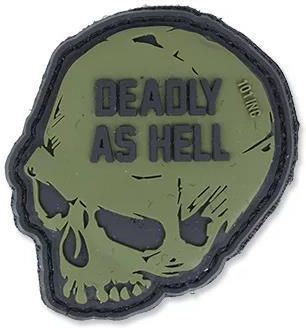 Naszywka Deadly As Hell firmy 101 Inc wykonana z elastycznego materiału. Cechy: - wysoce czytelna technologia 3D - mocowana za pomocą rzepu - w komplecie materiał do naszycia na odzież Wymiary: 55 x 60 mm