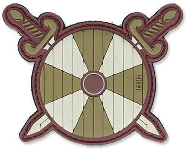 Naszywka Viking Shield With Two Swords firmy 101 Inc wykonana z elastycznego materiału. Cechy: - wysoce czytelna technologia 3D - mocowana za pomocą rzepu - w komplecie materiał do naszycia na odzież Wymiary: 90 x 75 mm