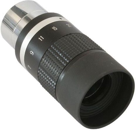 Okular Sky-Watcher Zoom 7-21 mm charakteryzuje się dobrą jakością generowanego obrazu przy zachowaniu odpowiedniej odległości od oka 15-18 mm. Soczewki pokryte zostały warstwami antyodblaskowymi typu MC poprawiającymi transmisje światła i pozwalającymi uzyskiwać jasne i pełne szczegółów obrazy. Okular można stosować w każdym teleskopie wyposażonym w wyciąg 1,25” Okular Sky-Watcher Zoom 7-21 mm to najczęściej wybierany przez naszych klientów okular zastępujący okulary dodawane w zestawie. Płynna zmiana powiększenia dostępna w tym okularze zastępuje cały zestaw okularów o ogniskowych od 7 do 21 mm, przy zachowaniu niższej ceny i tak samo dobrej jakości obrazu. Dodatkowym atutem okularów typu zoom jest to, że nie trzeba wciąż wymieniać w wyciągu okularów o różnych ogniskowych, aby szybko zmienić powiększenie teleskopu. Okular Sky-Watcher zoom 7-21 mm jest niezrównany, jeśli chodzi o obserwacje krajobrazowe i przyrodnicze lunetami oraz teleskopami soczewkowymi i Maksutowa. Poza tym, w teleskopie astronomicznym, zastąpi z powodzeniem zarówno okulary do obserwacji planet pod dużym powiększeniem, jak i okulary o długiej ogniskowej i dużym polu widzenia do obserwacji mgławic!
