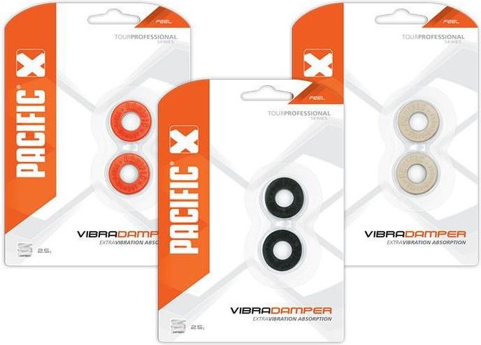 Tłumik drgań Pacific Vibra Damper - charakteryzuje się wysokim poziomem absorpcji wibracji. Klasyczne tłumiki w kształcie pierścienia. Wykonane z wysokiej jakości silikonu skutecznie przyczynią się do ochrony ramienia gracza tłumiąc drgań naciągu o różnym zakresie, występujących podczas gry. Bardzo łatwy sposób wpinania w struny. Kolor: biały, czarny, pomarańczowy, Waga: 2,5g Cena za 1 opakowanie (2 tłumiki w jednej kolorystyce).