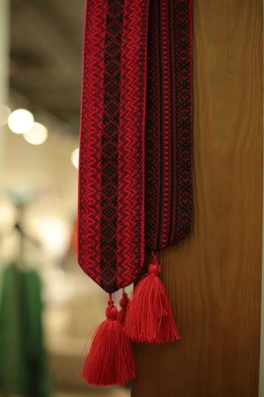 Pasek Krajka Słowiańska czerwona długa Pasek ludowy dł. 3,0 metry z frędzlami Dąbie