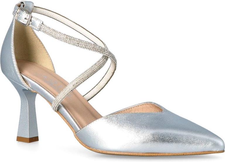 Szpilki ślubne z błyszczącymi paseczkami - KOTYL 3713 SREBRNE Dąbie