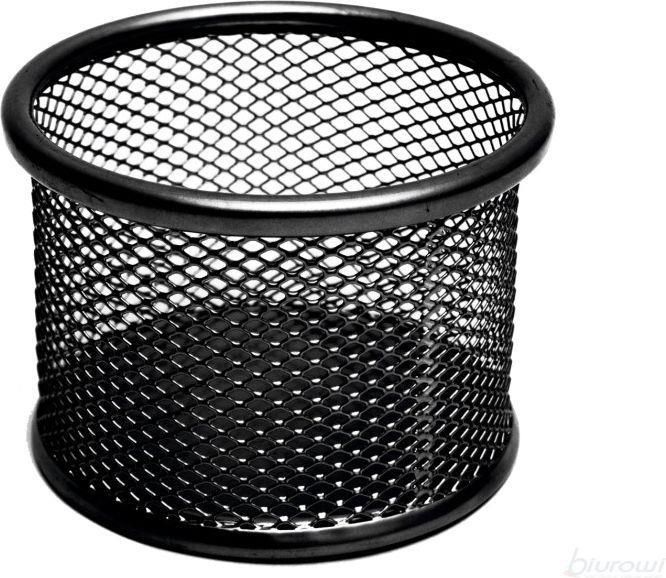 Pojemnik na długopisy metalowy TRES Kubek okrągły na długopisy średni Wykonany z metalowej siatki pokrytej lakierem Idealny do przechowywania długopisów, ołówków, pozwalając tym samym na utrzymanie porządku na biurku Wymiary: 6,5 cm wysokość x 9 cm Kolor czarny Kod producenta SKOSCZ Nr oferty xSale NET017-2